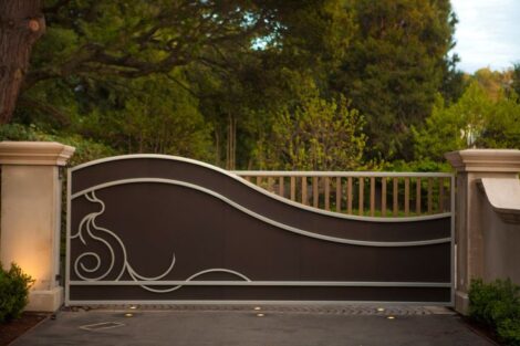 Современный дизайн ворот и калитки в стиле Лофт. В данном случае ворота откатные, в таком же плане возможно изготовить и распашные ворота.