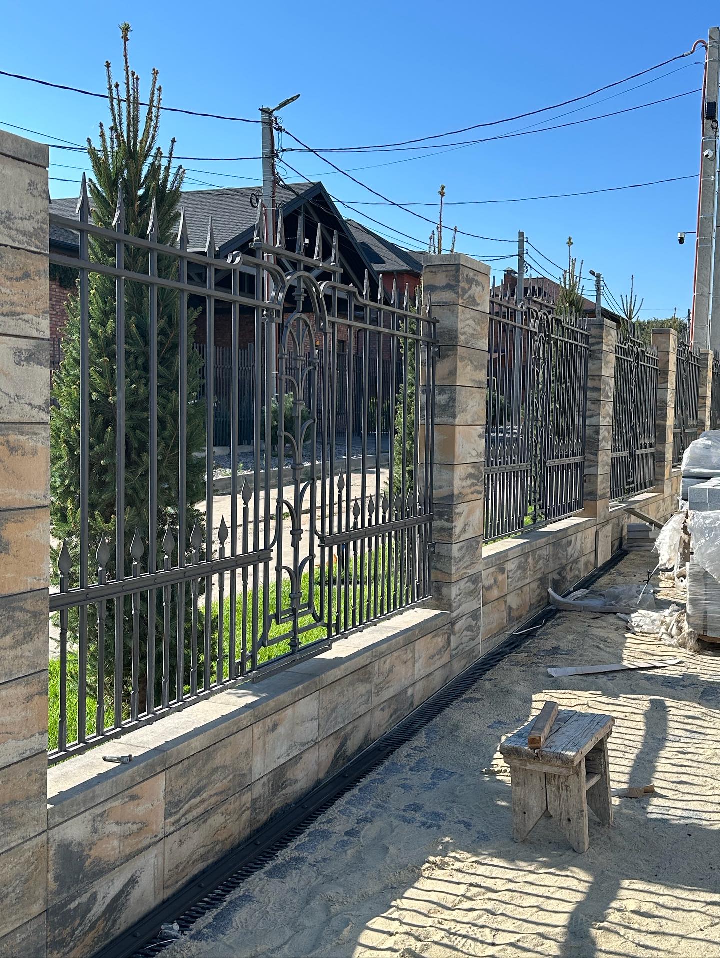 036 Кованый забор с массивными колоннами